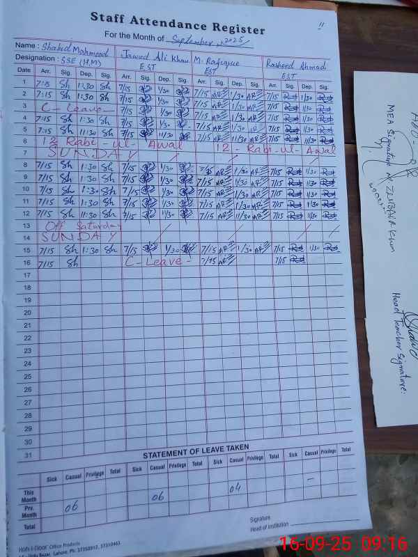 | Name: Sh**** Me**** Designation: (School Headmaster's/Headmistress's) SSE Phone/Cell Number: 03**** |