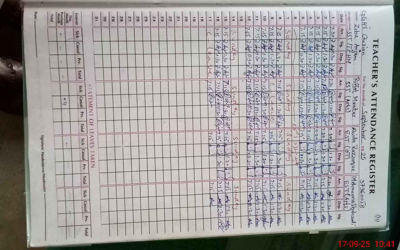 | Name: Ze**** An**** Designation: (School Headmaster's/Headmistress's) I/C Head Mistress Phone/Cell Number: 03**** |