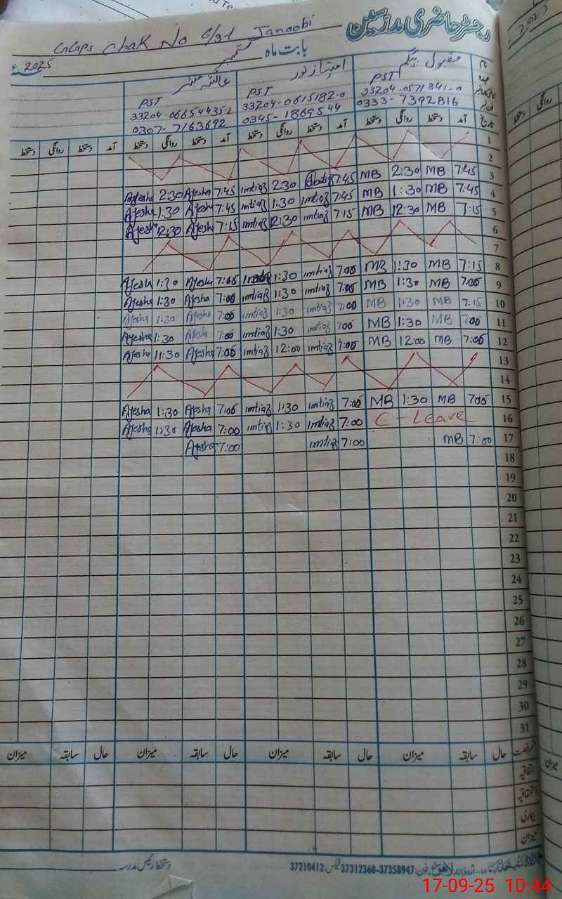 | CNIC | Full Name | Designation | R/C | Absence During Last Calender Month |