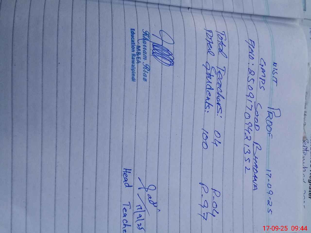 | Name: SA**** SH**** Designation: (School Headmaster's/Headmistress's) PTC/JV Phone/Cell Number: 03**** |