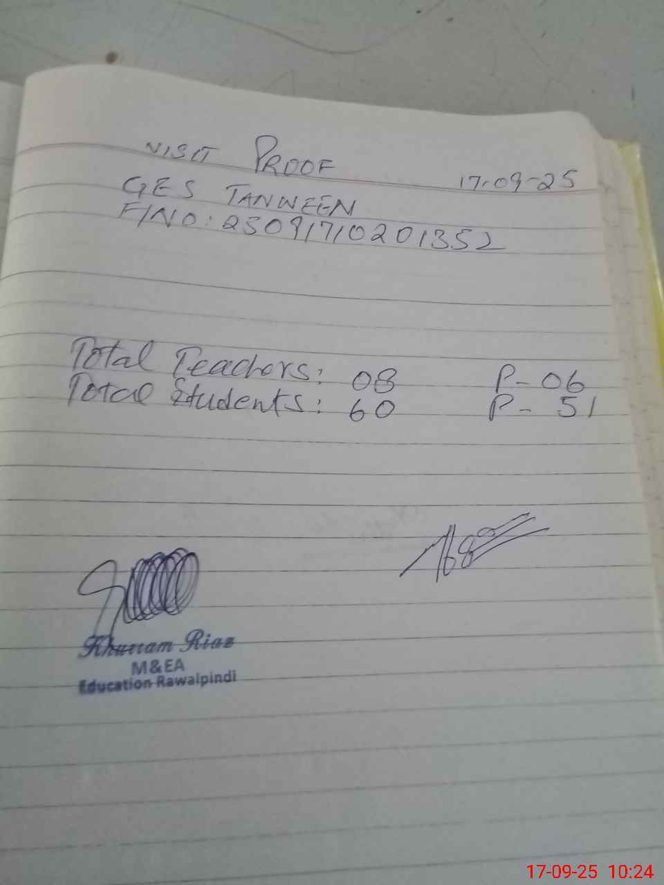| Attendance Register | Head Teacher | MEA with School | Visit Proof |