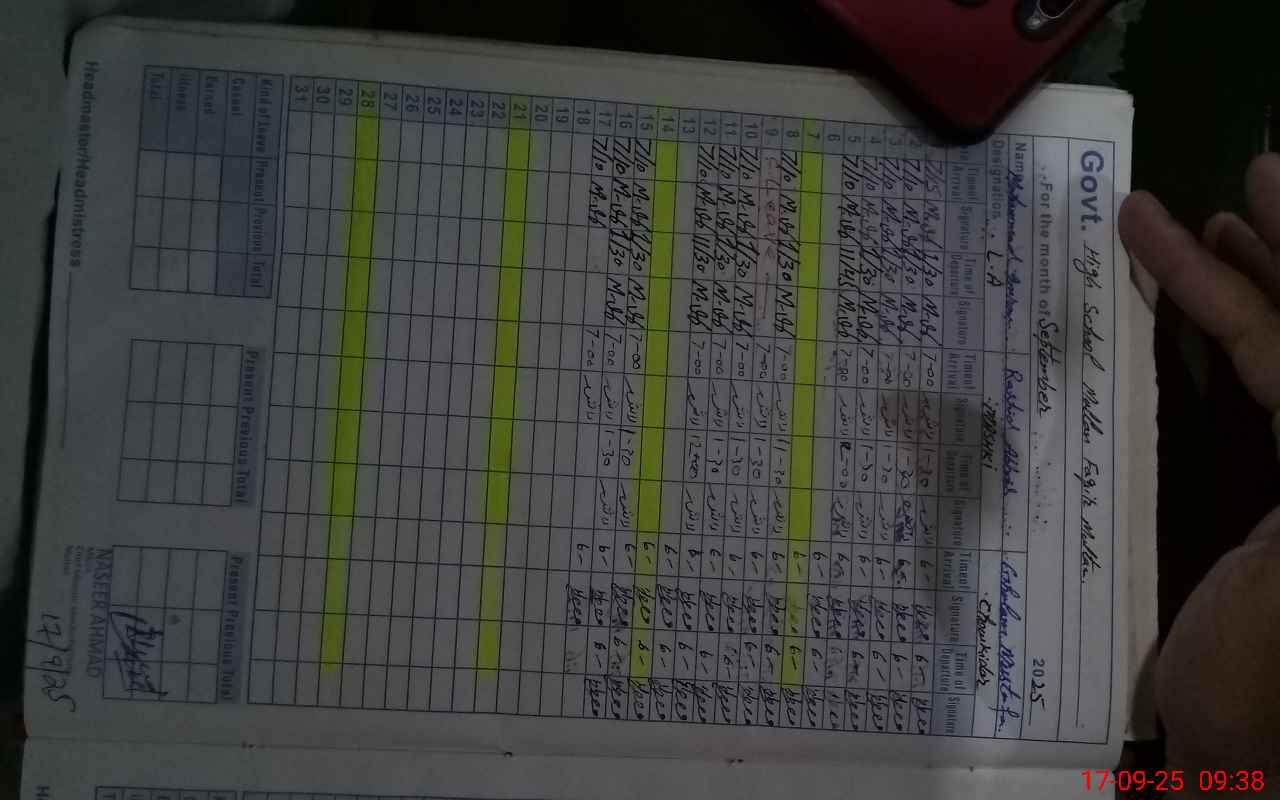 | Name: Mu**** Zu**** Designation: (School Headmaster's/Headmistress's) HEAD MASTER Phone/Cell Number: 03**** |