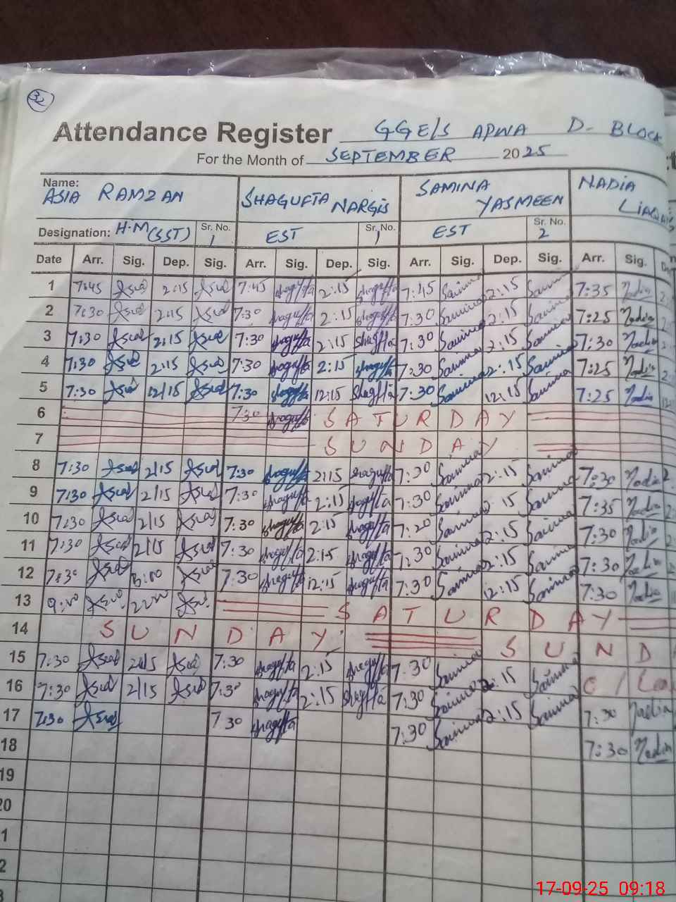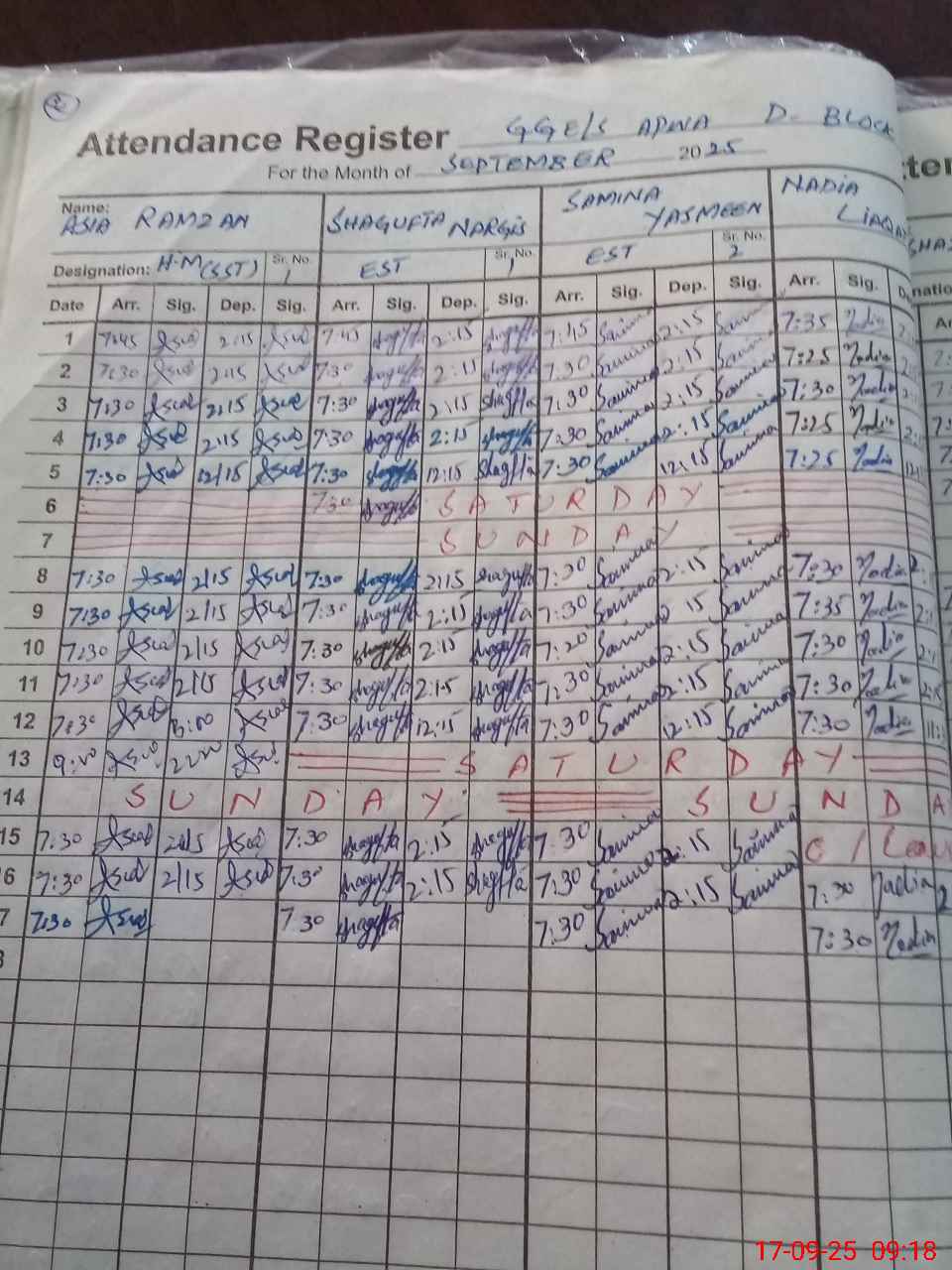 | 35**** | Sa**** Ar**** | 1 | 0 | 0 | 0 | 0 | 0 | 0 | 0 | 0 | 0 | Absent (Un-Authorized) | |