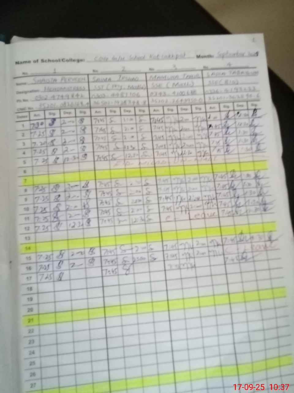 | Name: Sh**** Pe**** Designation: (School Headmaster's/Headmistress's) Head Mistress Phone/Cell Number: 03**** |