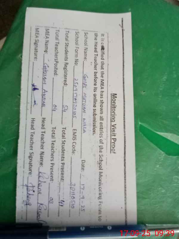 | EMIS Code: 38110510 | Name of School: GMPS MATUANN WALA | |||