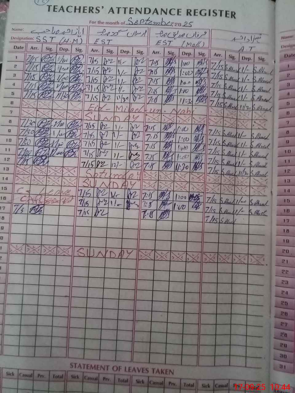 | Monitoring Date: 17-09-2025 | Start Time: 17-09-2025 10:08 AM | End Time: 17-09-2025 10:53 AM | Name of MEA: Sh**** Ah**** | |