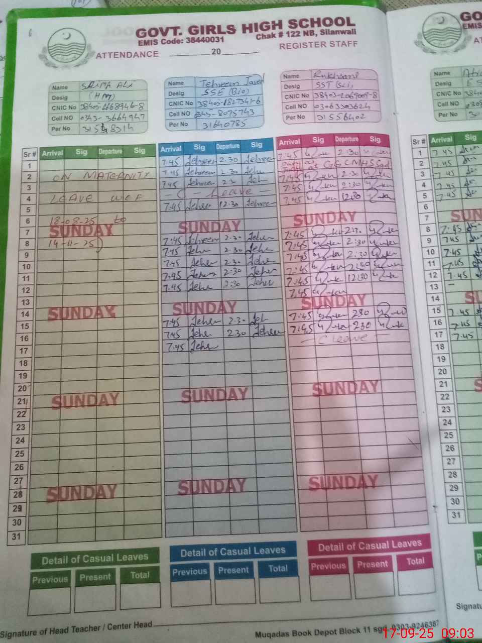 | 36**** | Ma**** Sh**** | 1 | 0 | 0 | 30 | 0 | 0 | 0 | 0 | 0 | 0 | Absent (Un-Authorized) | |