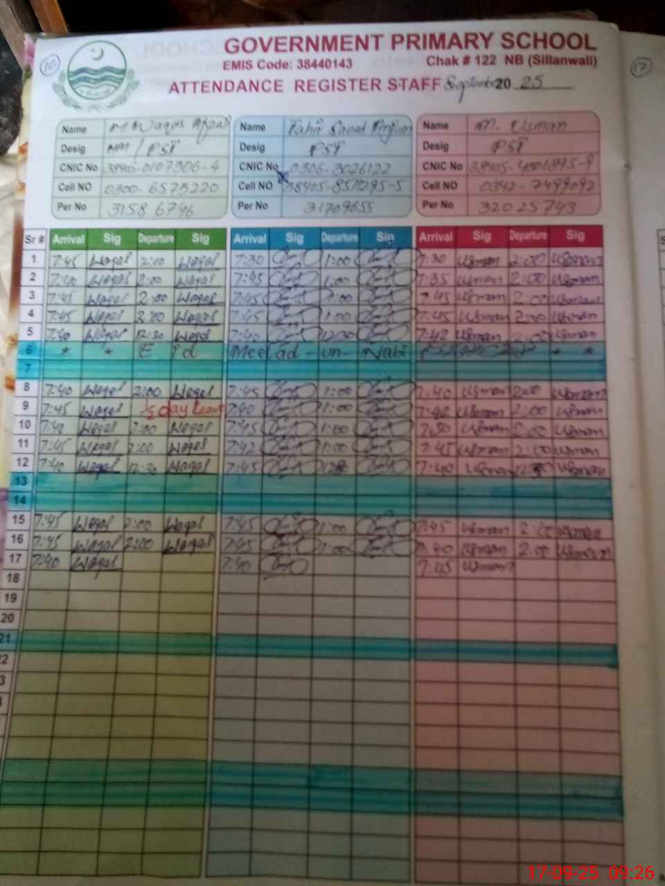 | Name: Mu**** Wa**** Designation: (School Headmaster's/Headmistress's) PST Phone/Cell Number: 03**** |
