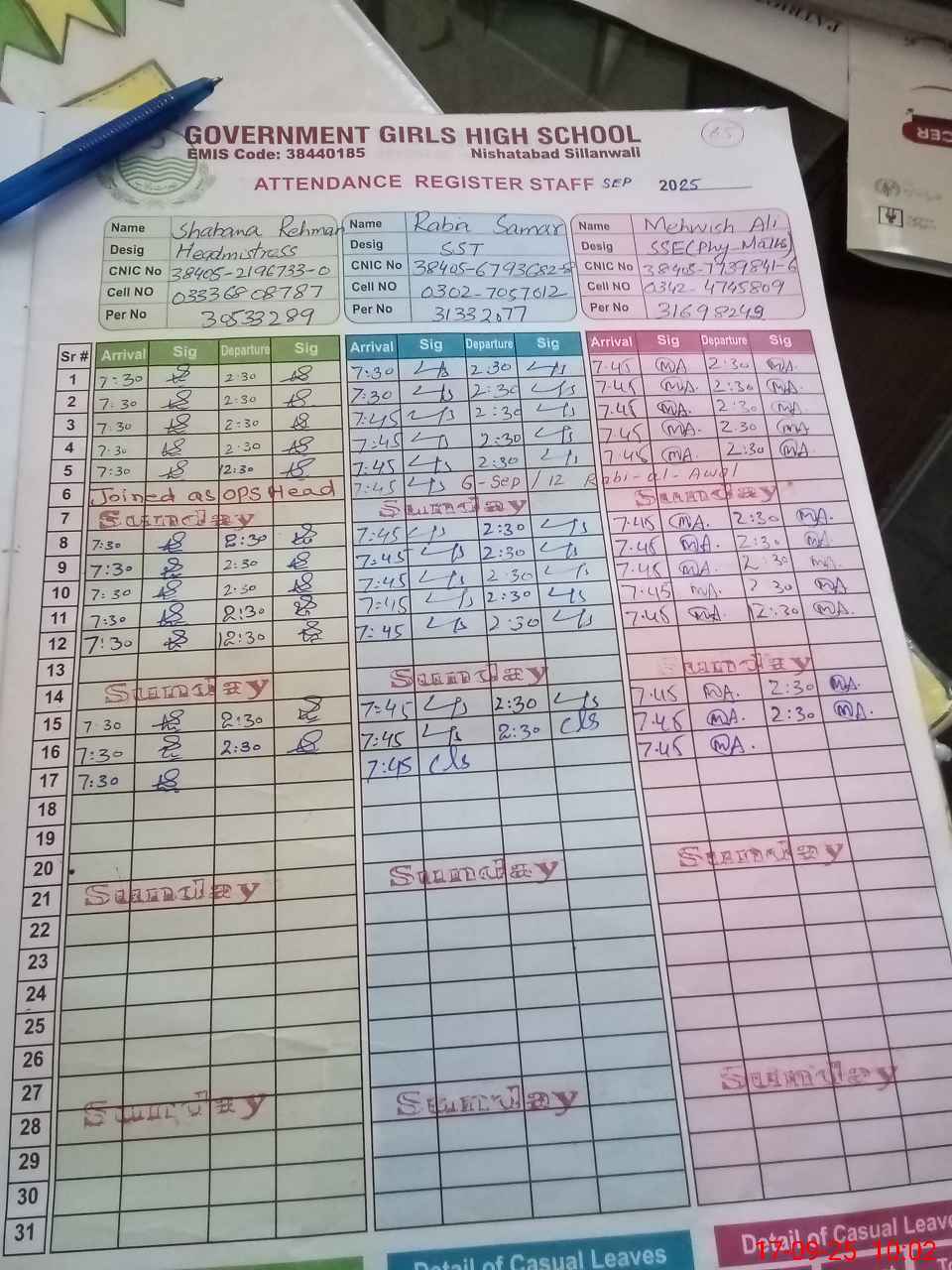 | Name: Sh**** Re**** Designation: (School Headmaster's/Headmistress's) SST (G) Phone/Cell Number: 03**** |