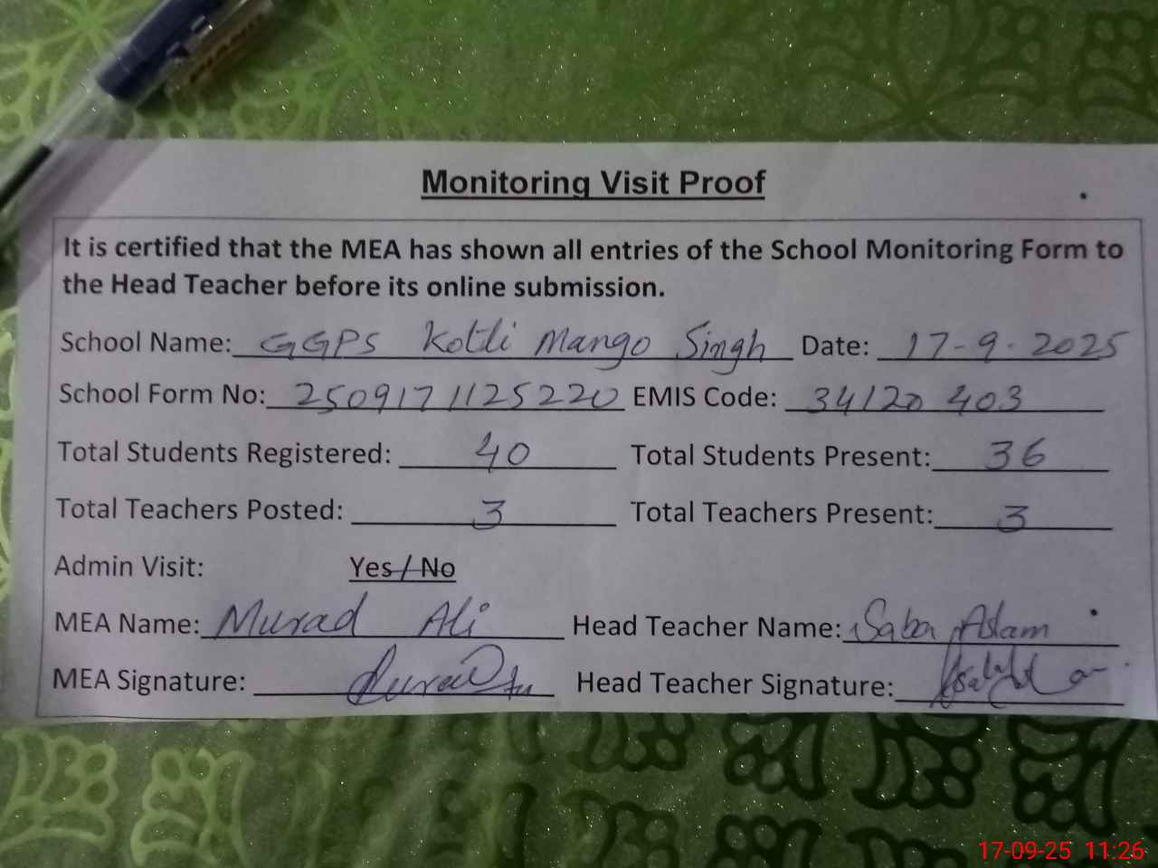| EMIS Code: 34120403 | Name of School: GGPS KOTLI MANGO SINGH | |||