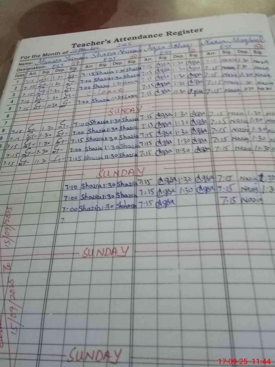 | Monitoring Date: 17-09-2025 | Start Time: 17-09-2025 11:19 AM | End Time: 17-09-2025 11:48 AM | Name of MEA: Qa**** Ka**** Kh**** | |