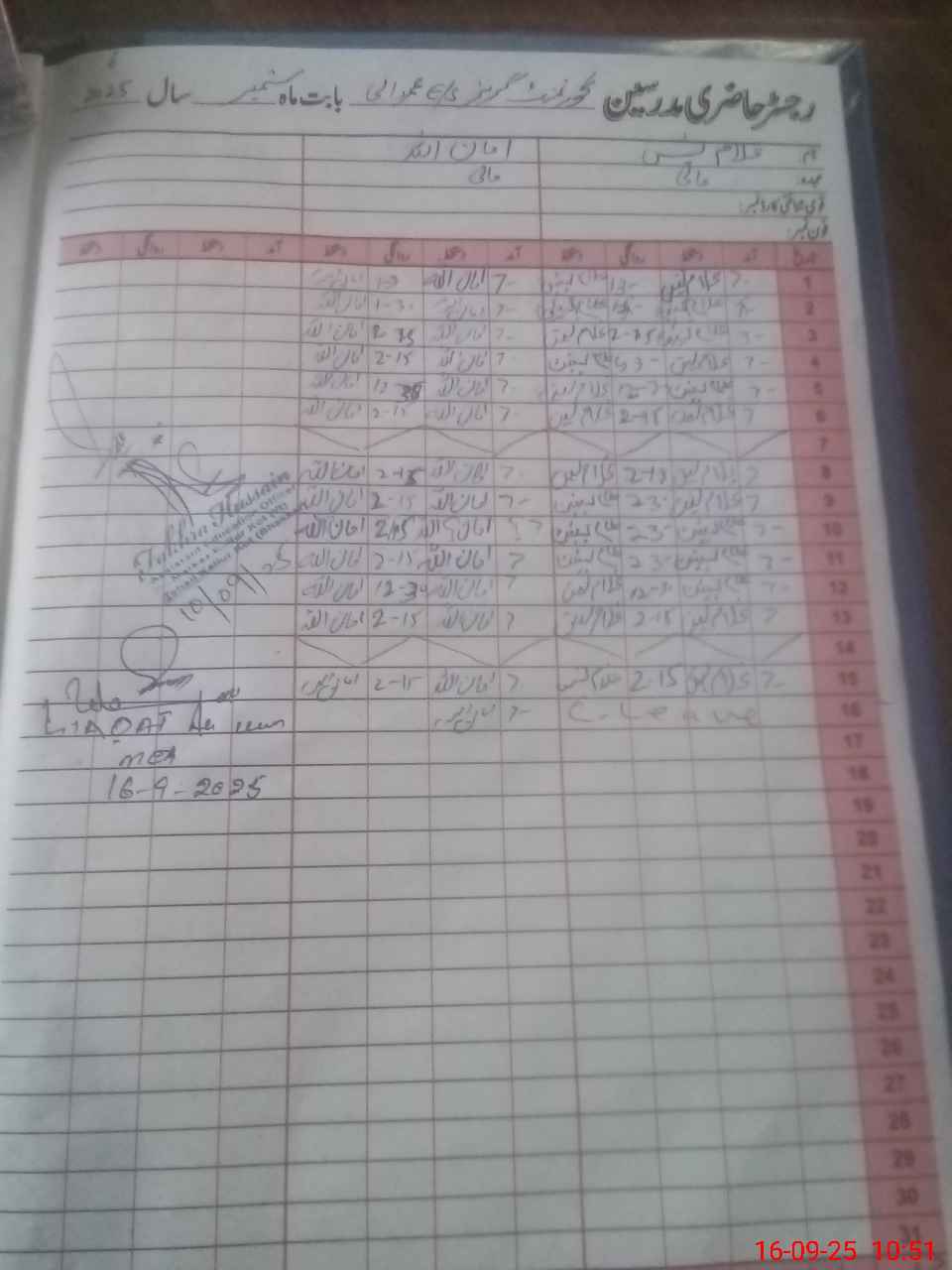 | 38**** | Gh**** Ya**** | MAALI | Regular | 0 | 0 | 0 | 0 | 0 | 0 | 0 | 0 | 0 | Casual |