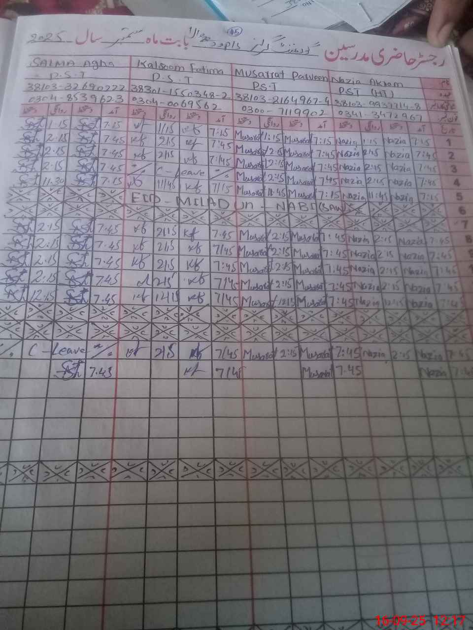 | CNIC | Full Name | Designation | R/C | Absence During Last Calender Month |