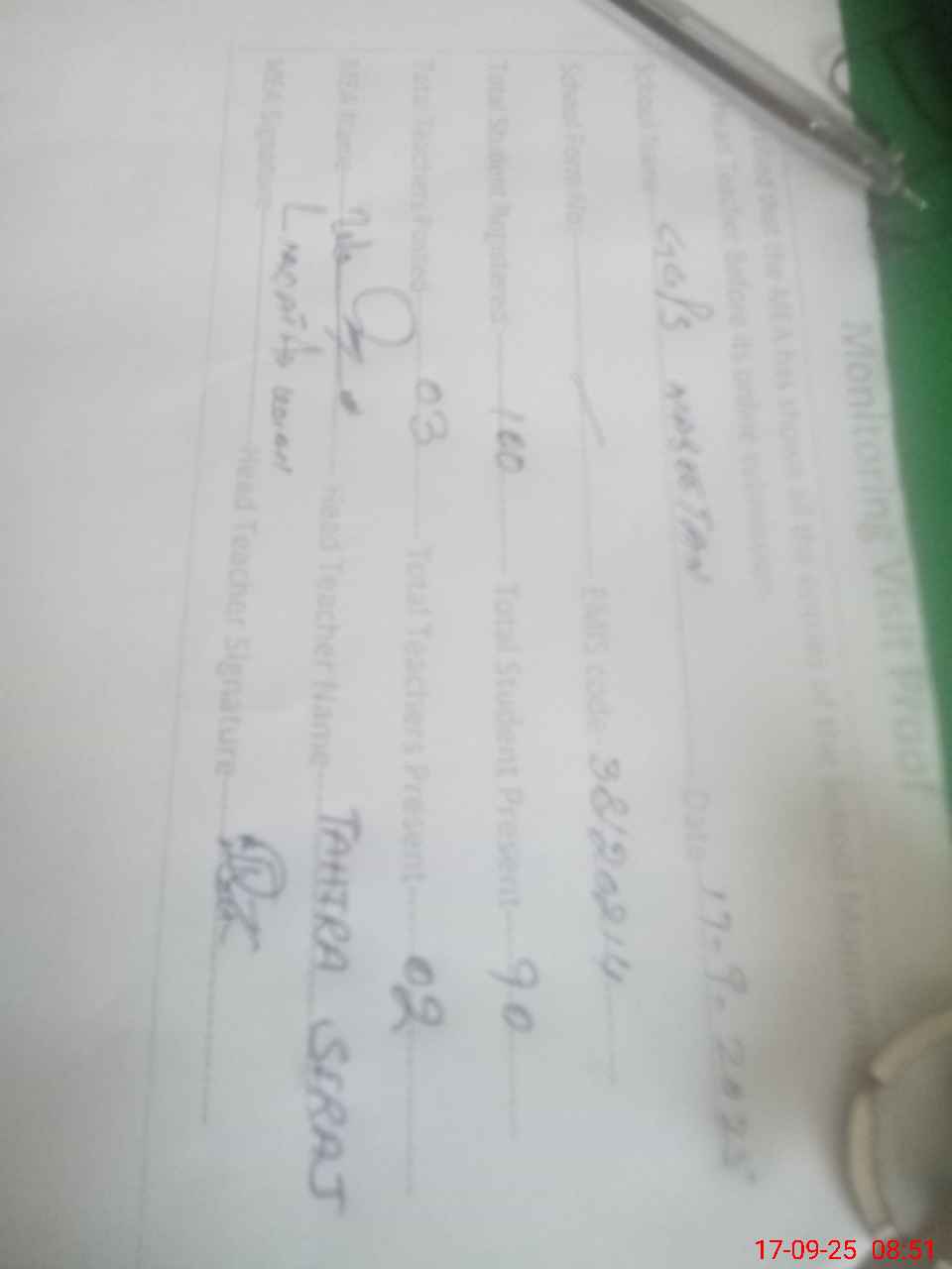 | Attendance Register | Head Teacher | MEA with School | Visit Proof |