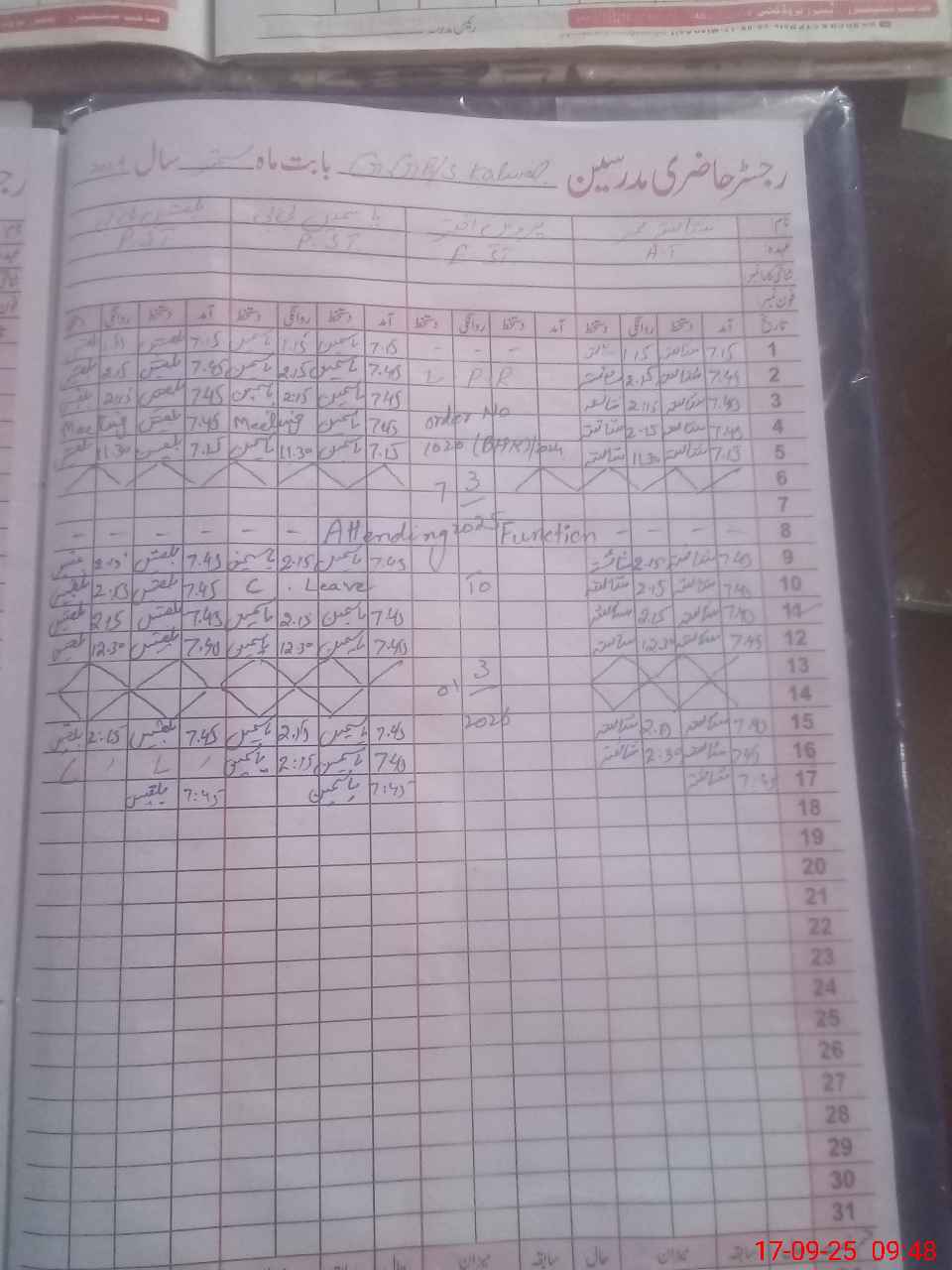 | CNIC | Full Name | Designation | R/C | Absence During Last Calender Month |
