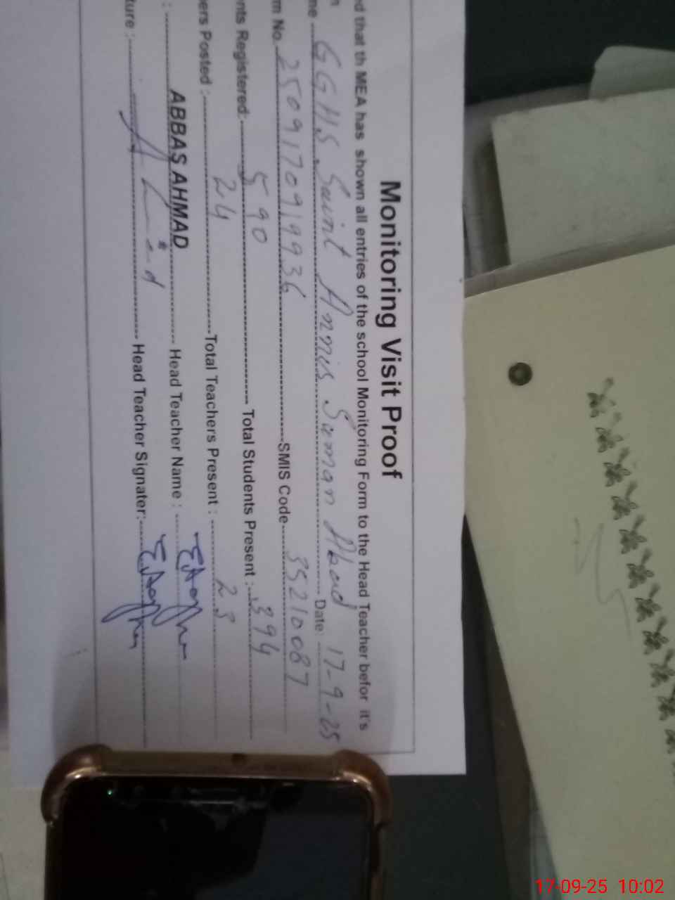 | EMIS Code: 35210087 | Name of School: GGHS SAINT ANNIS SAMANBAD | |||
