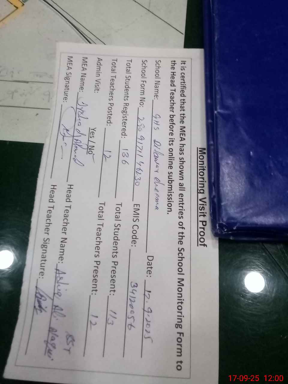 | EMIS Code: 34120056 | Name of School: GHS DILAWAR CHEEMA | |||