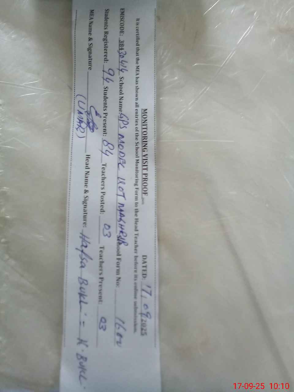 | Monitoring Date: 17-09-2025 | Start Time: 17-09-2025 09:41 AM | End Time: 17-09-2025 10:13 AM | Name of MEA: UM**** DR**** | |