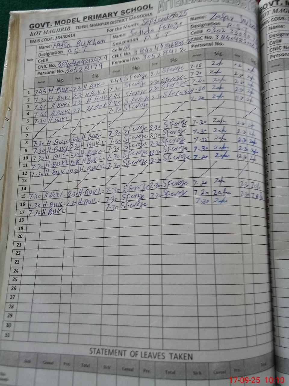 | Name: Ha**** Bu**** Designation: (School Headmaster's/Headmistress's) PST Phone/Cell Number: 03**** |
