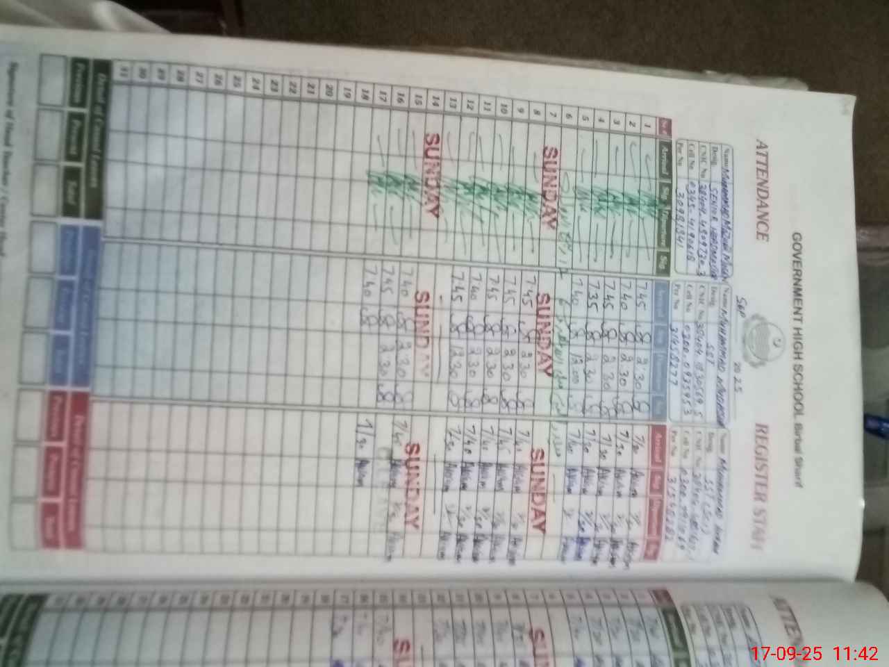 | CNIC | Full Name | Designation | R/C | Absence during last cal. month |