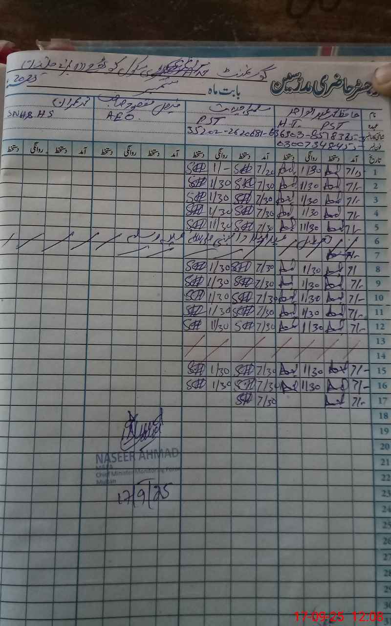 | Name: Ha**** MAb**** Wa**** Designation: (School Headmaster's/Headmistress's) HEADMASTER Phone/Cell Number: 03**** |