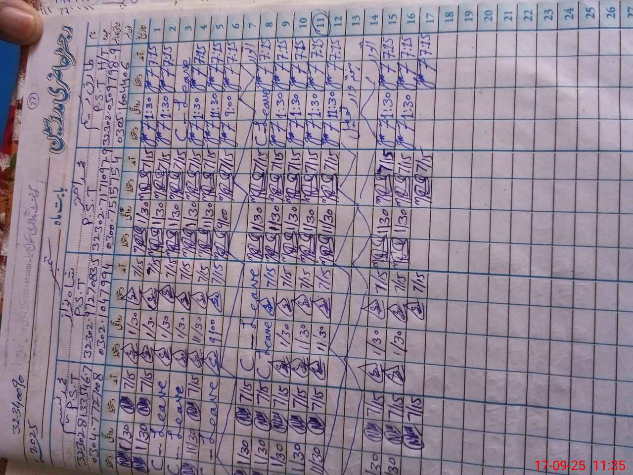 | CNIC | Full Name | Designation | R/C | Absence During Last Calender Month |