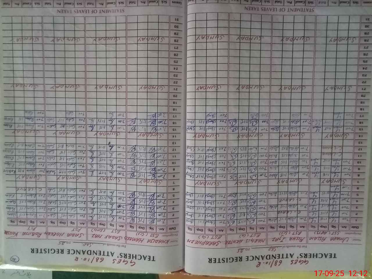 | No. of Students Present - Female | 0 | 0 | 58 | 26 | 21 | 16 | 17 | 18 | 14 | 18 | 14 | 202 | ||||