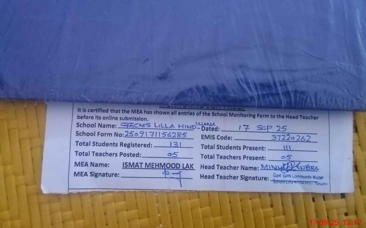 | EMIS Code: 37220262 | Name of School: GGCMS LILLA HINDWANA | |||