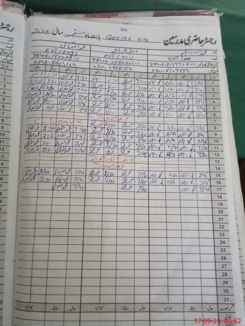 | Name: Mu**** Sa**** Designation: (School Headmaster's/Headmistress's) Sst Phone/Cell Number: 03**** |