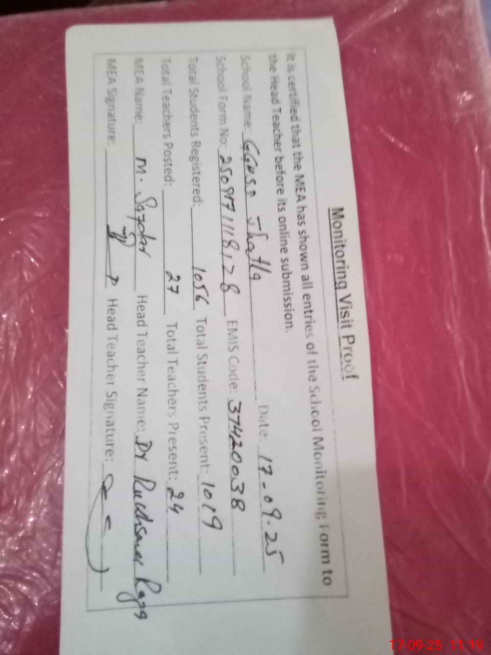 | Certified that this School was Inspected by the Undersigned MEA/DMO Today and the Information Stated Above is as Per Record. | |||||