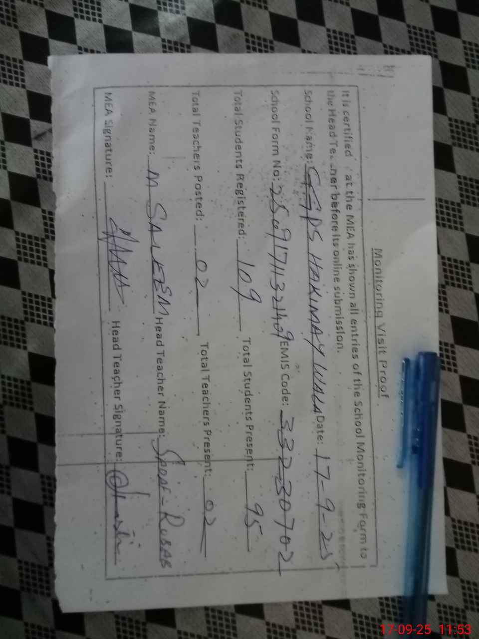 | EMIS Code: 33230702 | Name of School: GGPS HAKIMAY WALA | |||