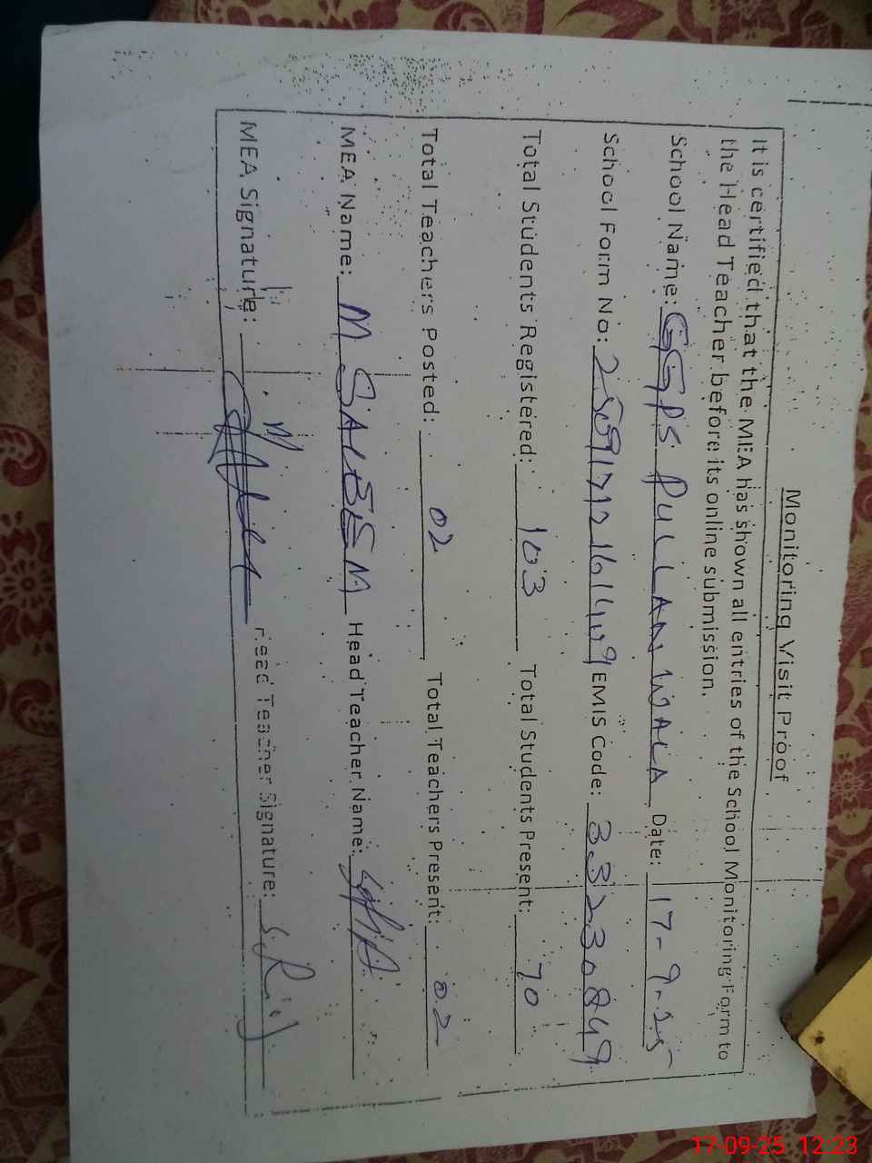 | EMIS Code: 33230849 | Name of School: GGPS PULLAN WALA | |||