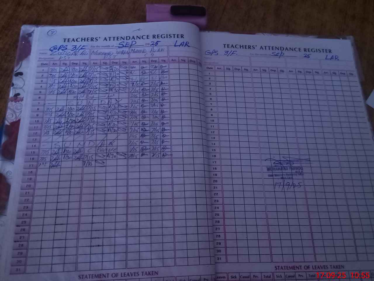 | Name: ZU**** AL**** Designation: (School Headmaster's/Headmistress's) PST/PTC/JV Phone/Cell Number: 03**** |