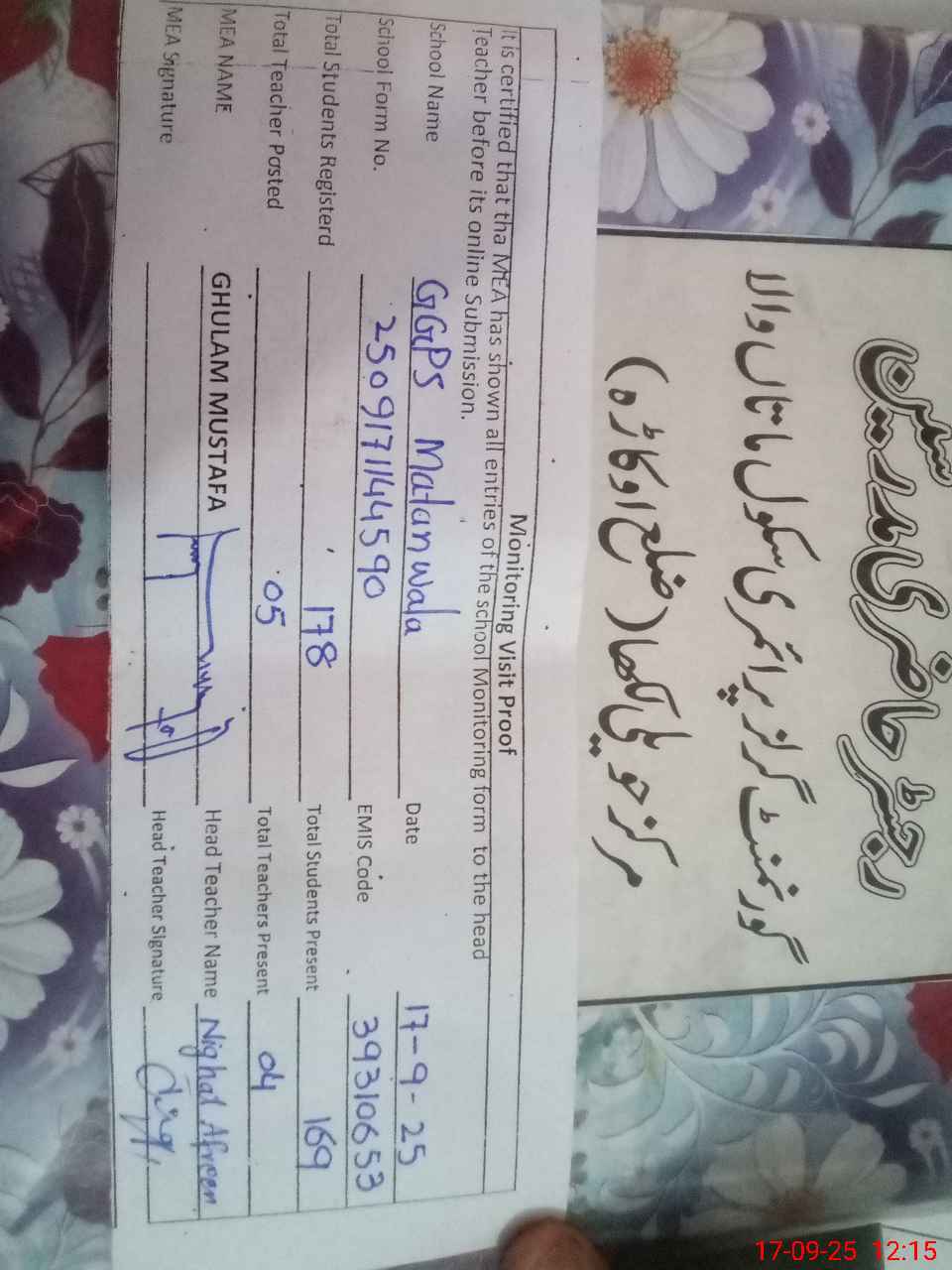 | EMIS Code: 39310653 | Name of School: GGPS MATAN WALA | |||