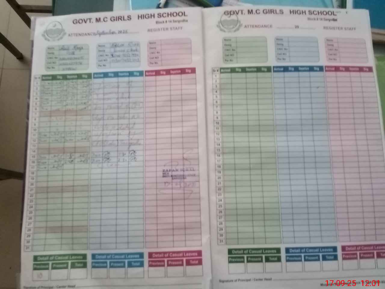 | EMIS Code: 38420662 | Name of School: GGHS MC BLOCK NO.14 SARGODHA | |||