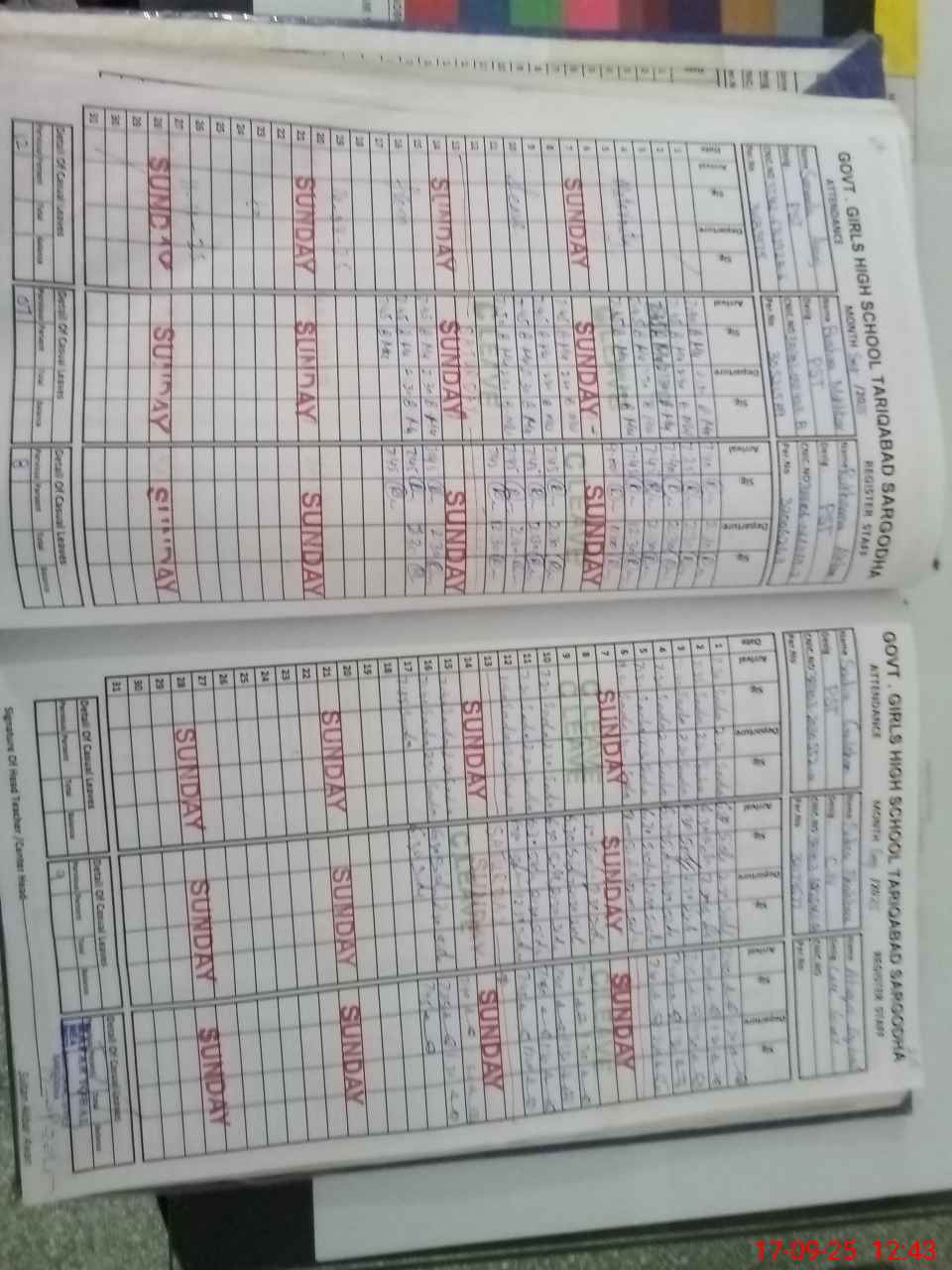 | CNIC | Full Name | Designation | R/C | Absence During Last Calender Month |