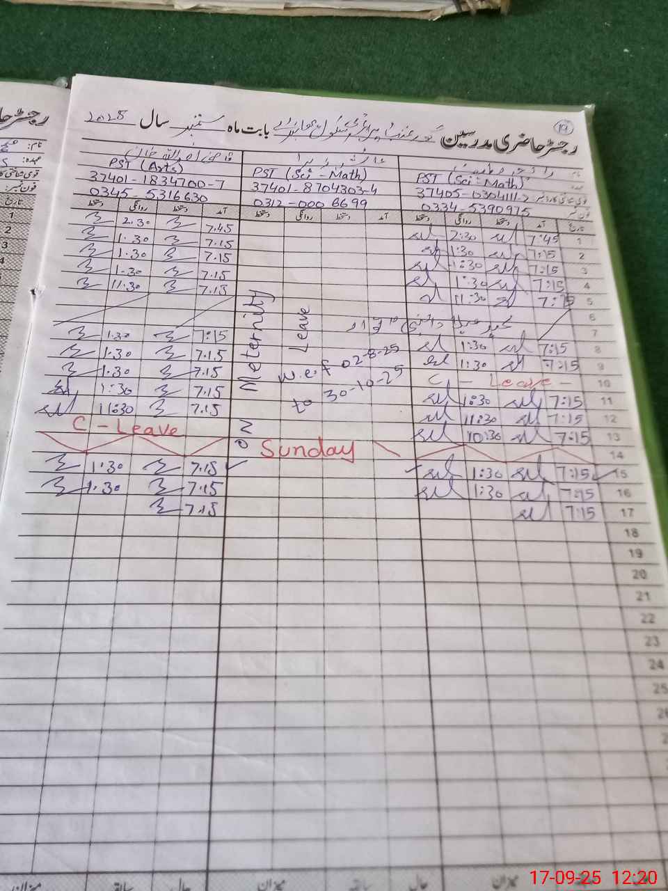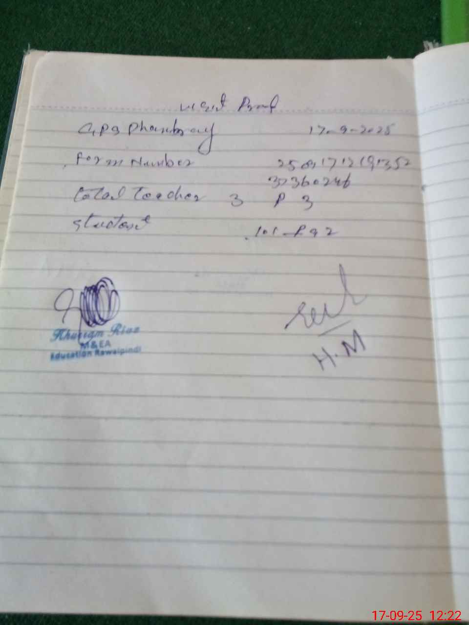 | Name: Ra**** La**** Designation: (School Headmaster's/Headmistress's) PST Phone/Cell Number: 03**** |