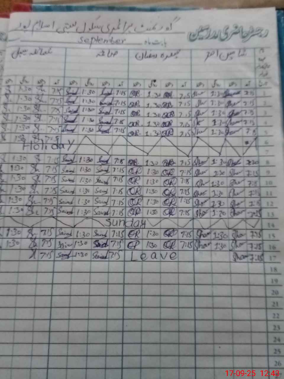 | CNIC | Full Name | Designation | R/C | Absence During Last Calender Month |
