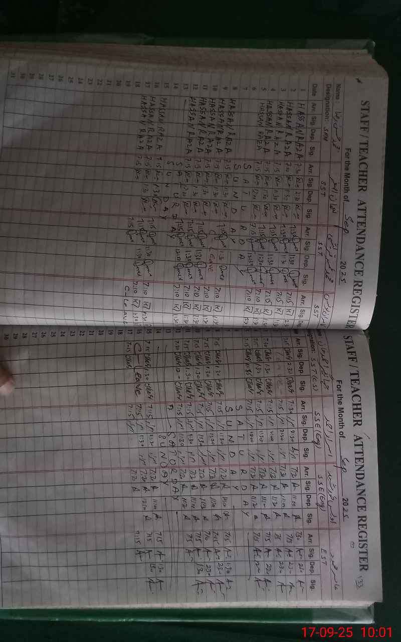 | CNIC | Full Name | Designation | R/C | Absence During Last Calender Month |