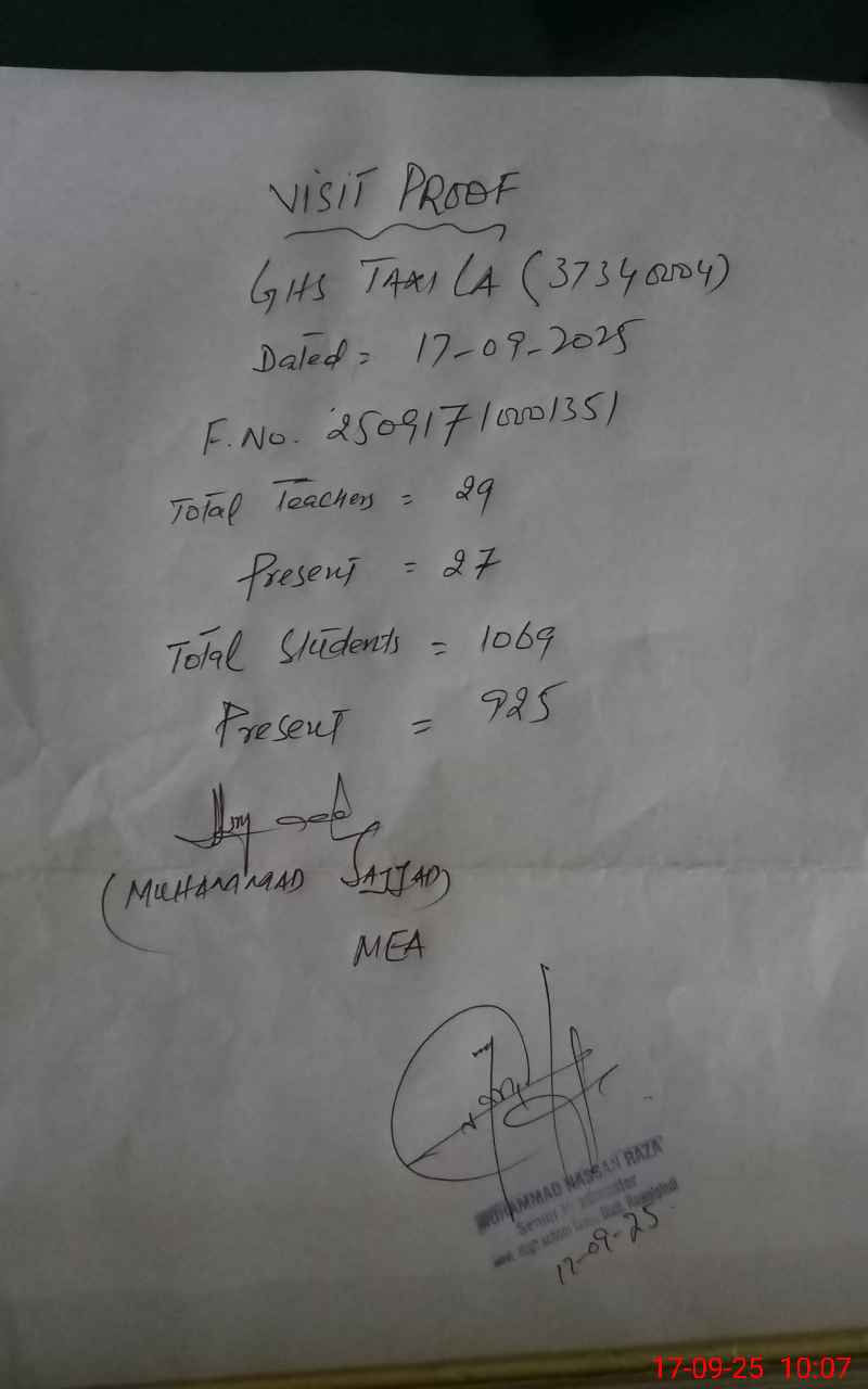 | EMIS Code: 37340004 | Name of School: GHS TAXILA | |||