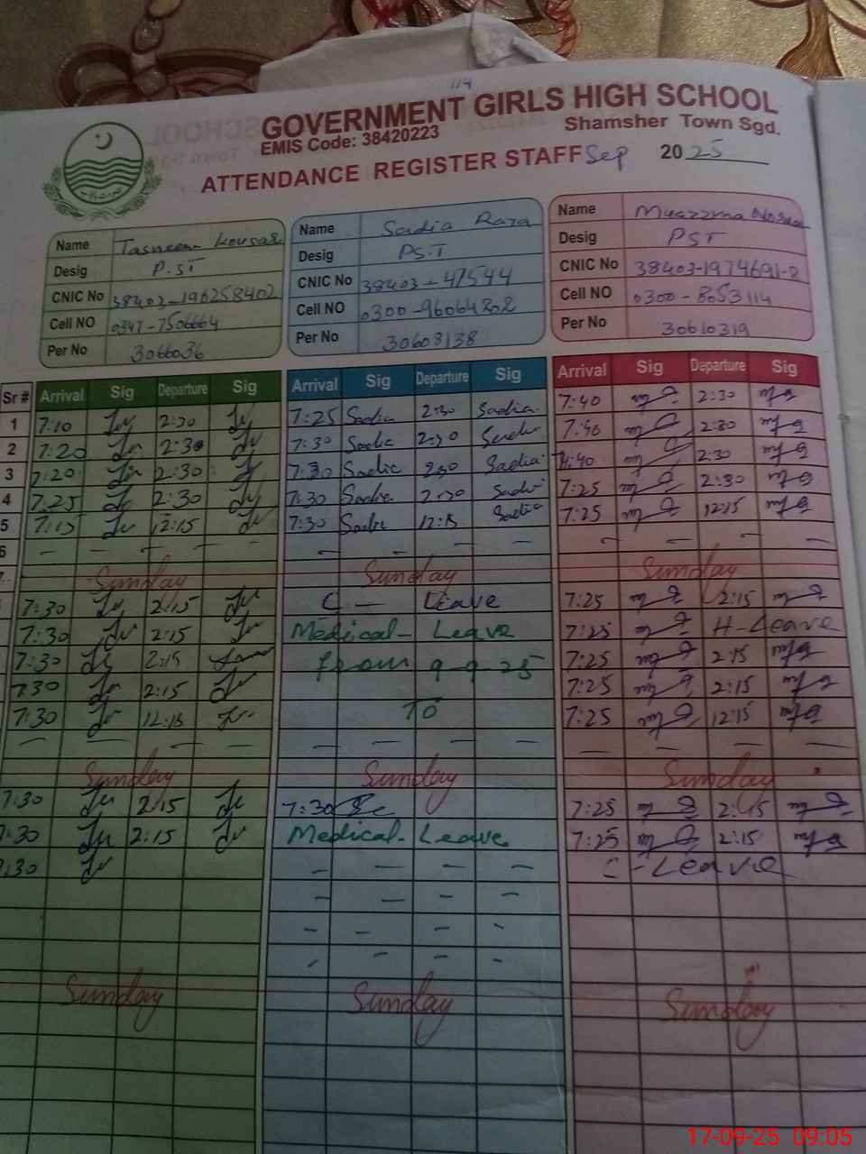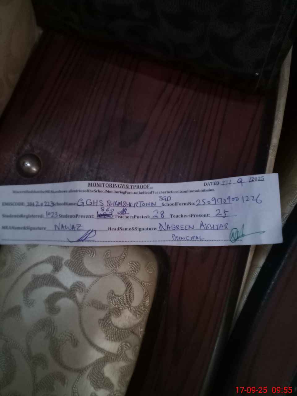 | EMIS Code: 38420223 | Name of School: GGHS SHAMSHER TOWN | |||