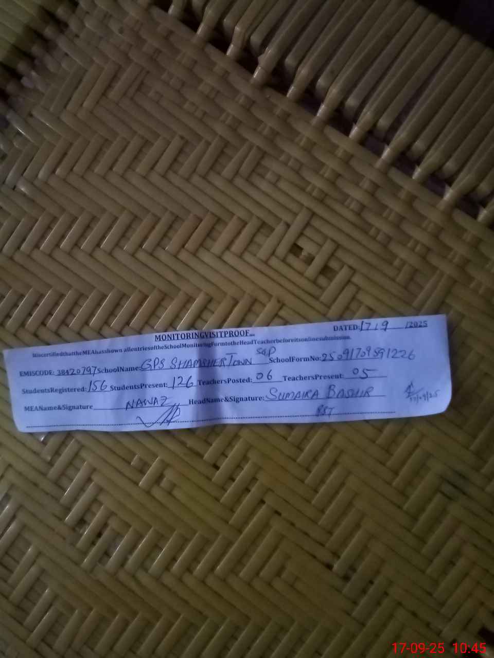 | EMIS Code: 38420797 | Name of School: GPS SHAMSHER TOWN | |||