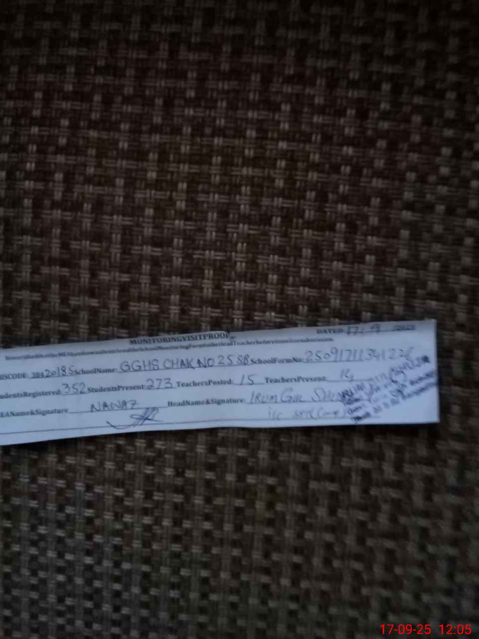 | EMIS Code: 38420185 | Name of School: GGHS CHAK NO.25 SB | |||