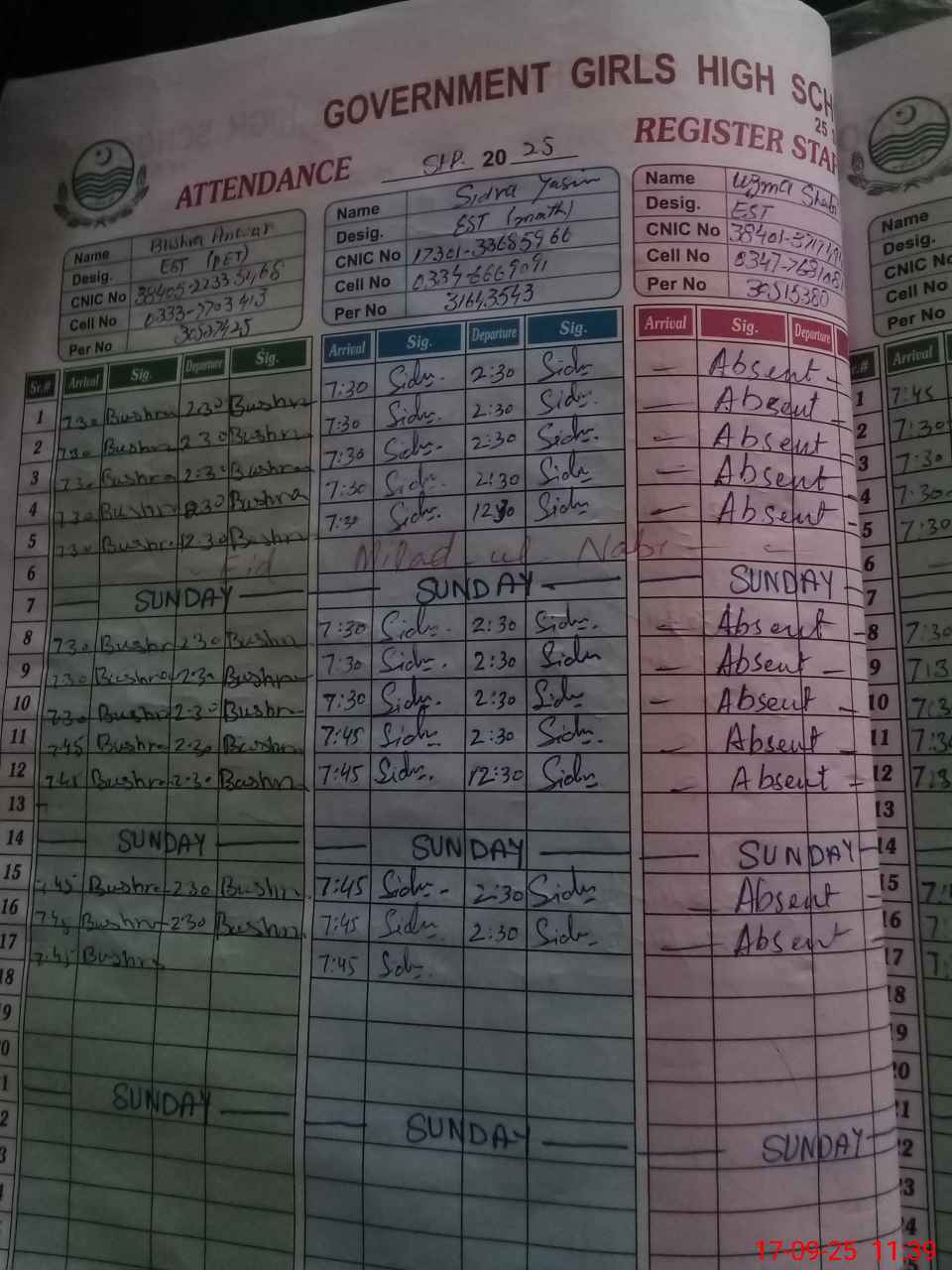 | Name: IR**** GU**** SH**** Designation: (School Headmaster's/Headmistress's) SST Phone/Cell Number: 03**** |