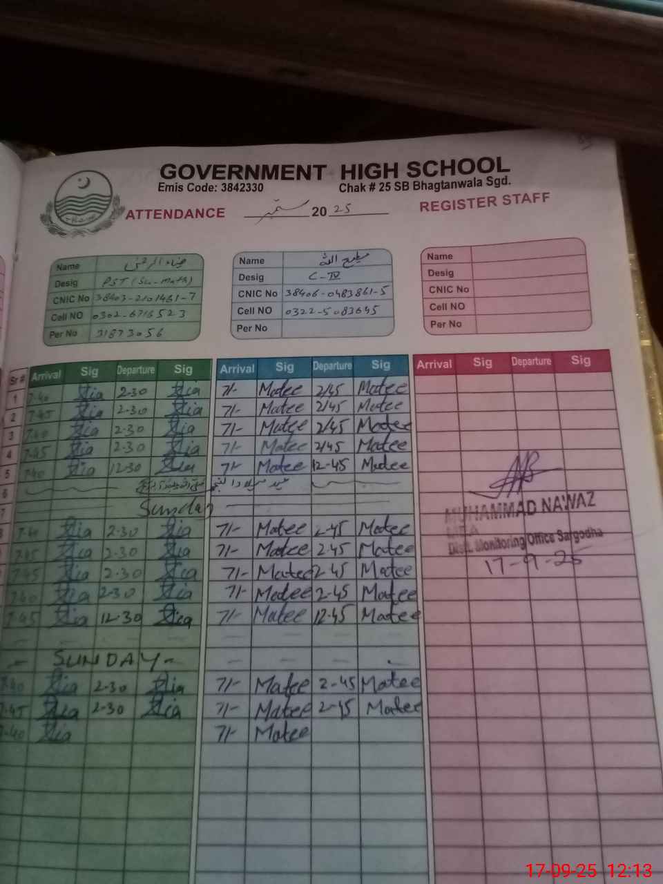| Name: MU**** SA**** Designation: (School Headmaster's/Headmistress's) SST Phone/Cell Number: 03**** |