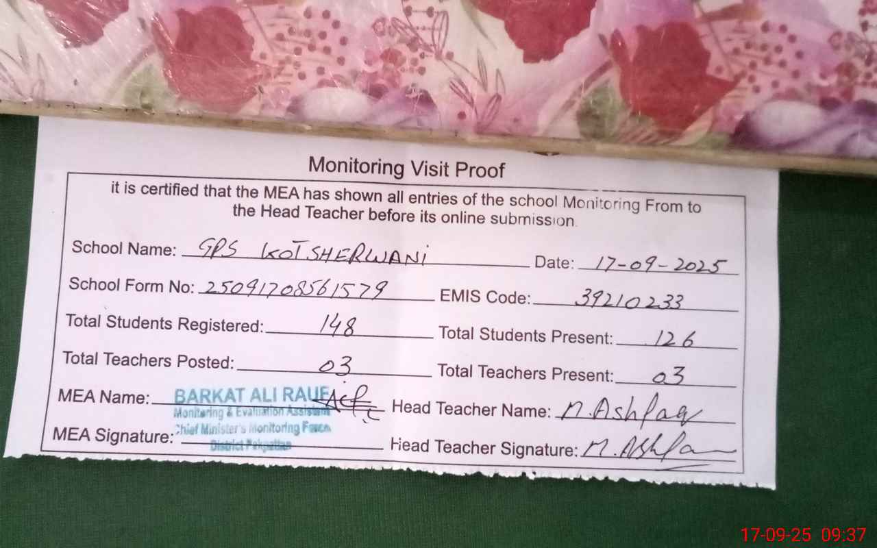 | EMIS Code: 39210233 | Name of School: GPS KOT SHERWANI DAKHLI RAKH MALKA HANS | |||