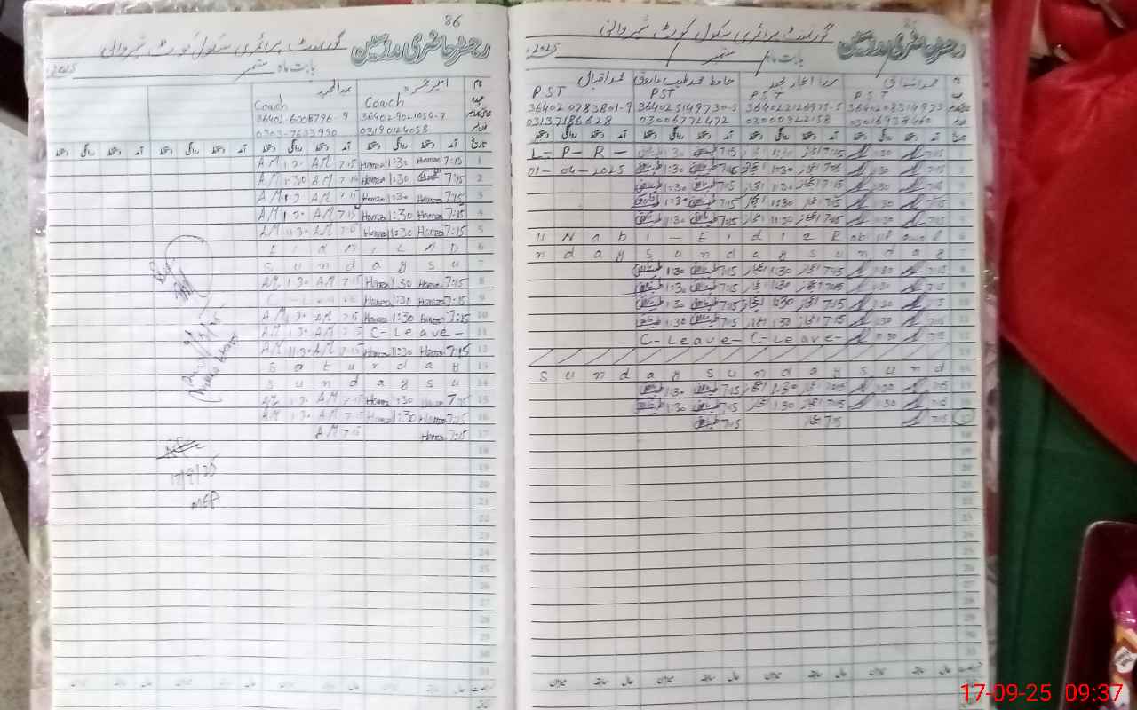| CNIC | Full Name | Designation | R/C | Absence During Last Calender Month |