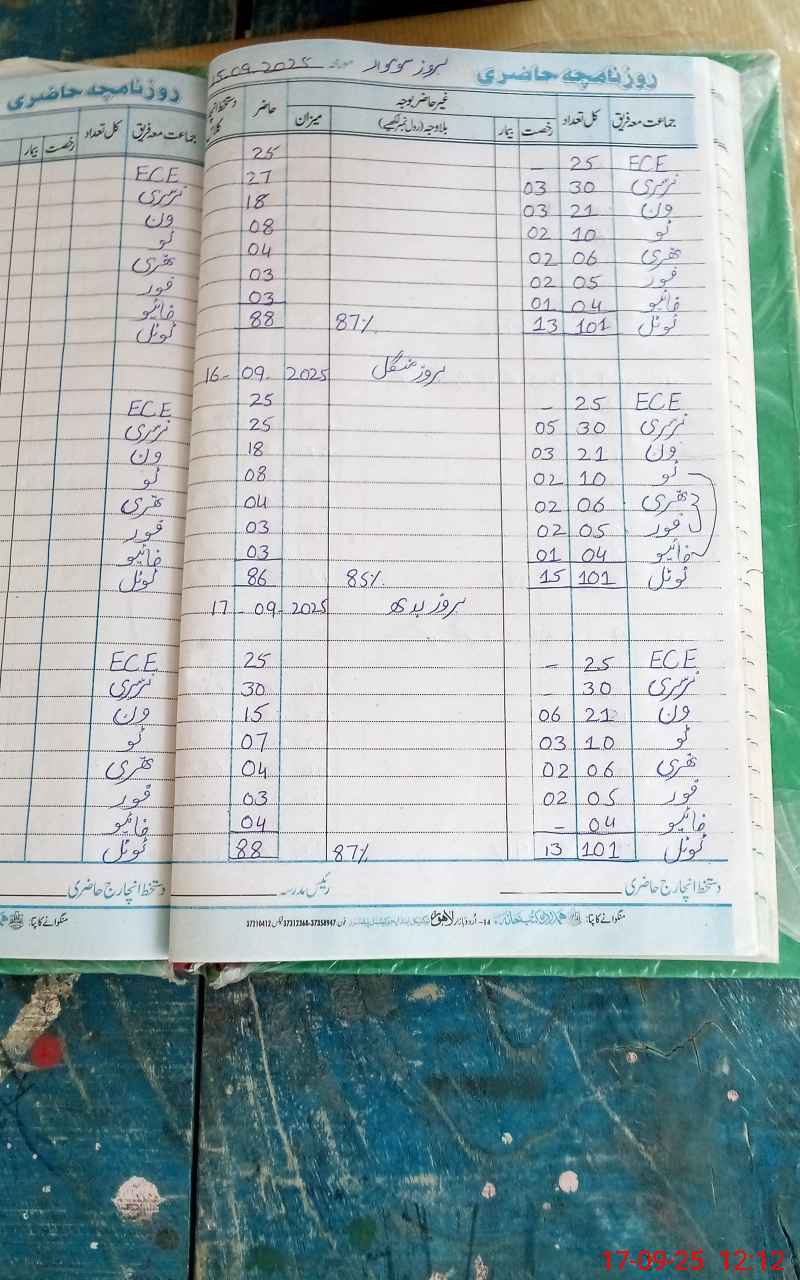 | Attendance Register | Head Teacher | MEA with School | Visit Proof |