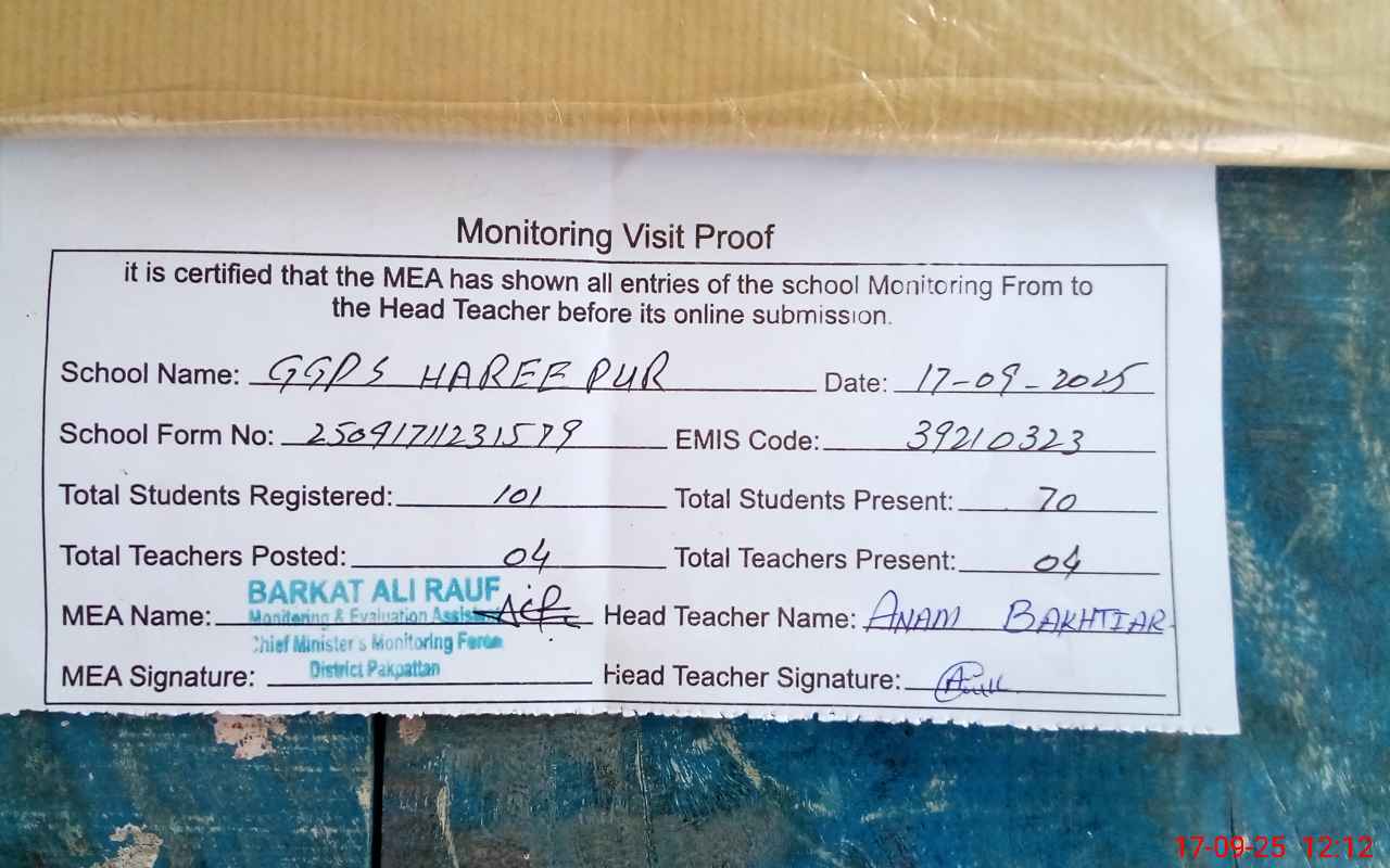 | EMIS Code: 39210323 | Name of School: GGPS HAREE PUR | |||