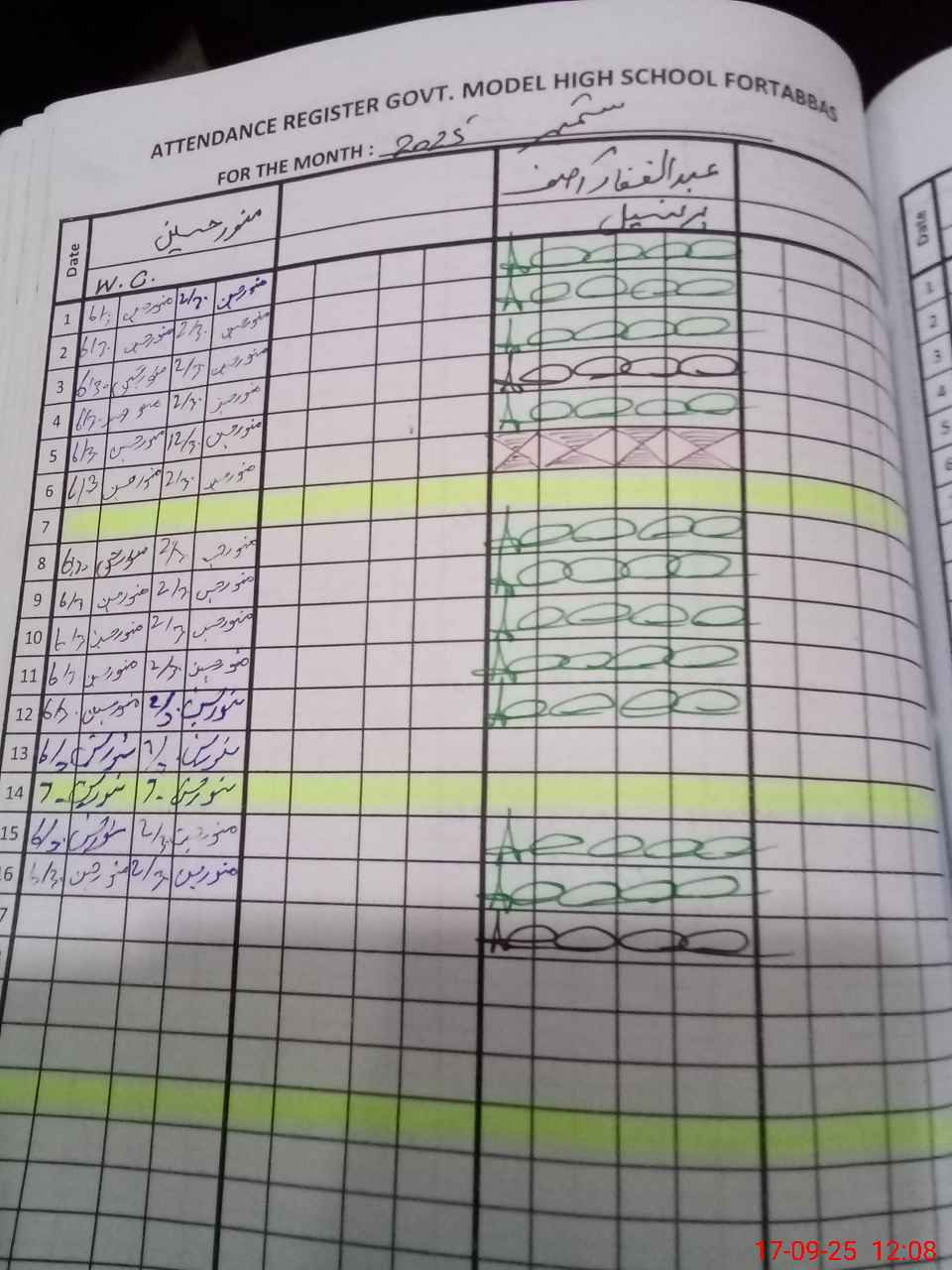 | CNIC | Full Name | Designation | R/C | Absence During Last Calender Month |